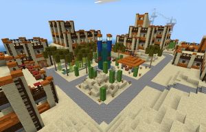 Saguaria is built upon two desert islands; the smaller island is home to the Saguaria Palace, while the rest of the town is built on the bigger island. Saguaria neighbors Palustris to the south; the relocated Alpha Pyramid is around 300 blocks east of Saguaria.